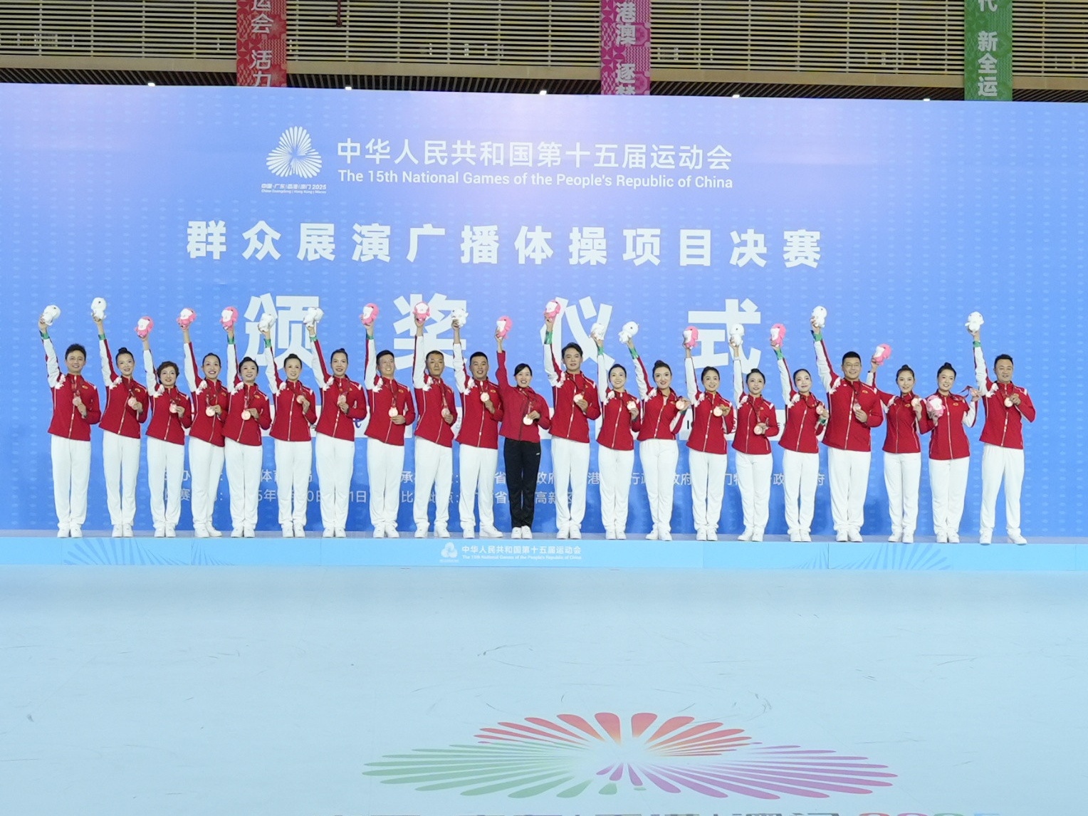 9月21日,第十五届全国运动会群众展演广播体操项目决赛在中山大学珠海校区体育馆落幕,河南广播体操代表队以92.09分获第五名,我校艺术系团队深度参与并助力佳绩。