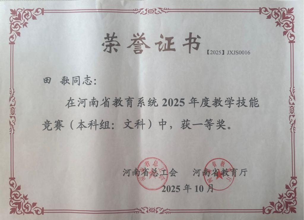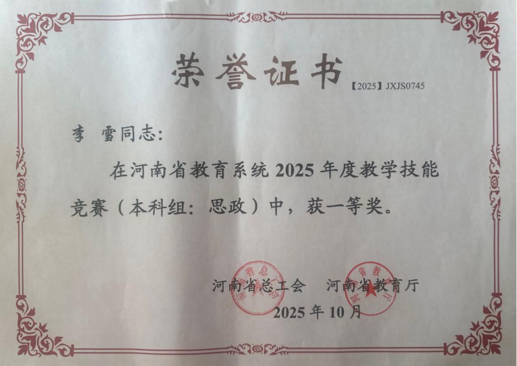 近日,河南省教育系统2025年度教学技能竞赛结果正式揭晓,河南体育学院参赛教师凭借扎实功底、创新设计与出色表现斩获本科组多项大奖,田歌获文科一等奖,杨茜获工科一等奖,李雪获思政科一等奖,胡昭瑾获经管科二等奖,张梦媛获理科三等奖。此次竞赛学校获奖等次高、覆盖组别广、获奖人次多,在全省参赛院校中表现亮眼,充分彰显我校教师过硬教学实力,印证了学校教师教学能力培养的系统布局与扎实成效。
